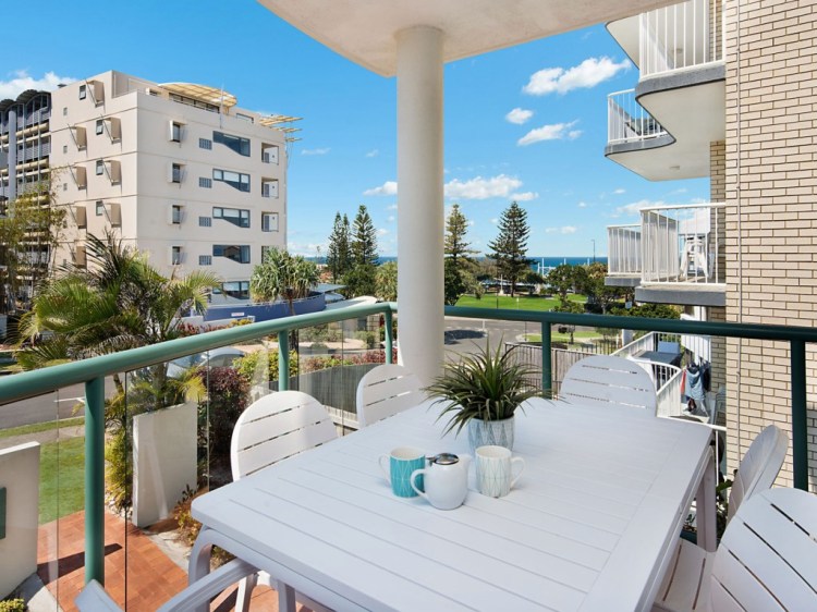 The apartment features a spacious living area. Boasting an idyllic front balcony to sit, relax and catch the sea breeze.